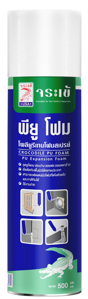 Crocodile PU Foam – bọt nở PU dạng bình xịt 1 thành phần. Bọt nở nhanh & độ phủ lớn: loại PU mở rộng 3–5 lần giúp lấp đầy khe, khoảng trống hiệu quả. Bám chắc trên hấu hết vật liệu xây dựng như bê tông, gỗ, thủy tinh, kim loại... Cách nhiệt và cách âm tốt. Chống ẩm, chống nấm mốc và chịu UV. Lớp bọt PU cứng sau khi khô, dễ dàng cắt gọt, chà mịn và sơn phủ.