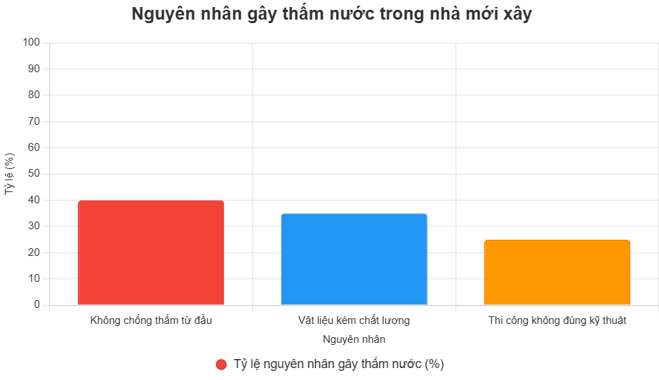 Nhiều nhà thầu bỏ qua hoặc xem nhẹ việc chống thấm trong giai đoạn xây dựng để tiết kiệm thời gian và chi phí. Tuy nhiên, điều này dẫn đến hậu quả nghiêm trọng: nước thấm qua móng, sàn, tường hoặc mái, gây hư hỏng cấu trúc và tăng chi phí sửa chữa. Theo các chuyên gia, hơn 40% các trường hợp thấm nước ở nhà mới xây xuất phát từ việc không áp dụng chống thấm từ đầu. Ví dụ, một ngôi nhà ở Hà Nội không được chống thấm móng đã bị nước ngầm xâm nhập, gây nứt nền chỉ sau một năm sử dụng.